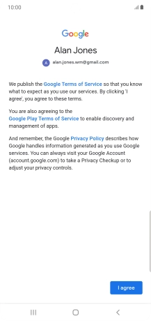 Press I agree and follow the instructions on the screen to select settings for your Google account.