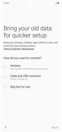 Press Next and follow the instructions on the screen to transfer content from another phone.