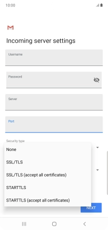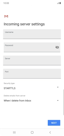 Press the field below "Server" and key in the name of your email provider's incoming server.
