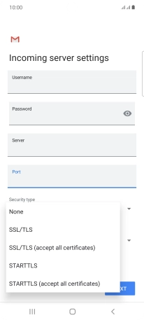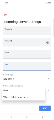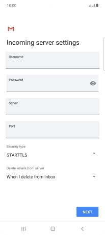 Press the field below "Server" and key in the name of your email provider's incoming server.