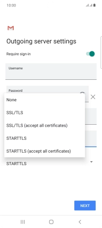 Press the field below "Username" and key in the username for your email the email provider's outgoing server.