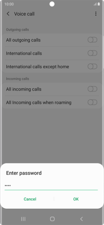 Key in your barring password and press OK. The default barring password is 0000.