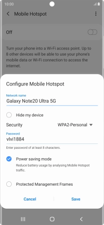 Use your Samsung Galaxy Note20 Ultra 5G Android 10.0 as a Wi-Fi hotspot