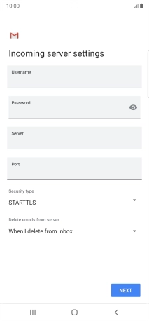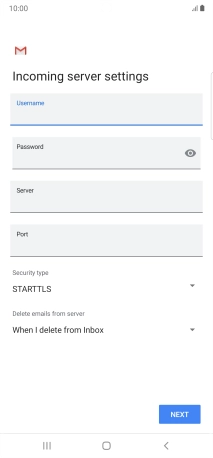 Press the field below "Server" and key in the name of your email provider's incoming server.