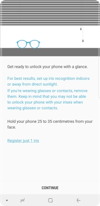 Follow the instructions on the screen to create the phone lock code using iris scanning.