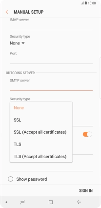Press the field below "Password" and key in the password of your email provider's outgoing server.