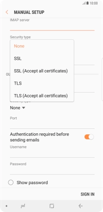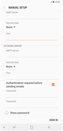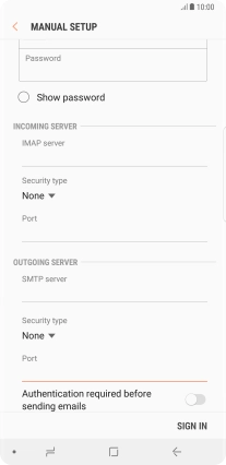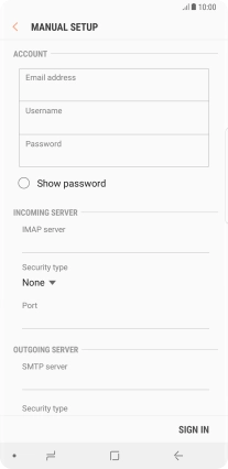 Press the field below "IMAP server" and key in the name of your email provider's incoming server.