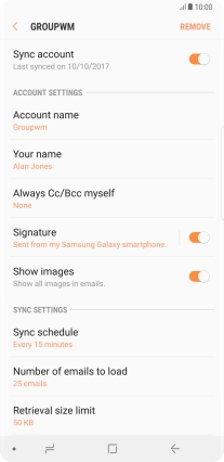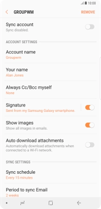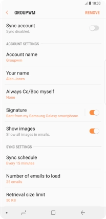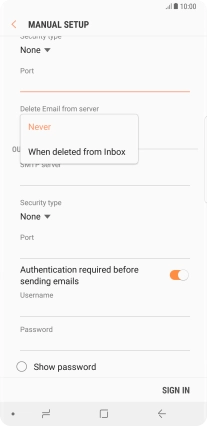 Press When deleted from Inbox to delete email messages on the server when you delete them on your phone.