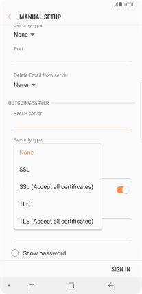 Press the field below "Password" and key in the password of your email provider's outgoing server.