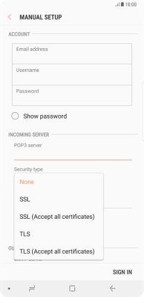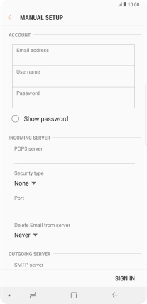 If this screen is displayed, you email account has been recognised and set up automatically. Follow the instructions on the screen to key in more information and finish setting up your phone.