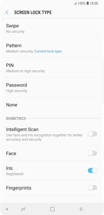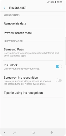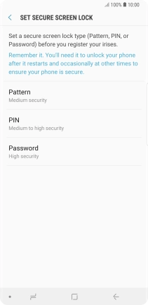 Follow the instructions on the screen to create the phone lock code using iris scanning.