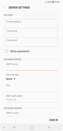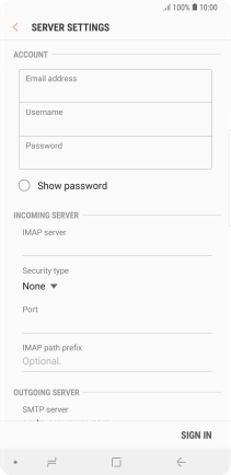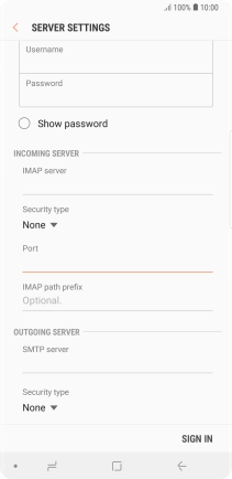 Press the field below "IMAP server" and key in the name of your email provider's incoming server.