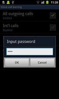 Key in your barring password (default is 0000), and press OK.