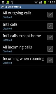 When the box next to the menu item is empty, call barring is turned off.