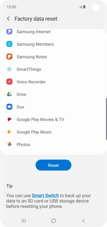 Press Delete all. Wait a moment while the factory default settings are restored. Follow the instructions on the screen to set up your phone and prepare it for use.
