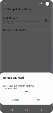Press the indicator next to "Lock SIM card" to turn the function on or off.