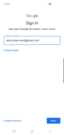 If you don't have a Google account, press Create account and follow the instructions on the screen to create an account.