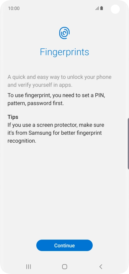 Follow the instructions on the screen to create the phone lock code using your fingerprint.