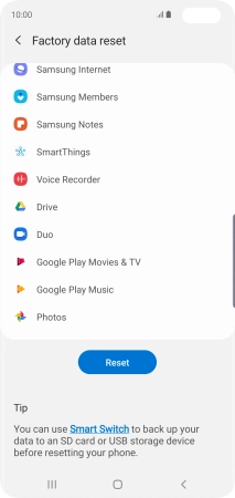 Press Delete all. Wait a moment while the factory default settings are restored. Follow the instructions on the screen to set up your phone and prepare it for use.