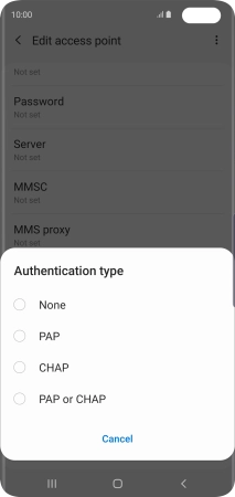 7. Enter APN type