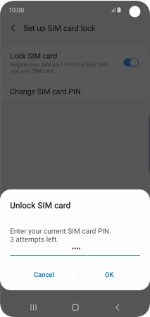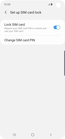 Press the indicator next to "Lock SIM card" to turn the function on or off.