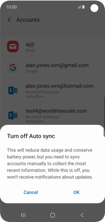 Press the indicator next to "Auto sync data" to turn the function on or off.