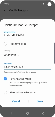 Press WPA2 PSK to password protect your Wi-Fi hotspot.