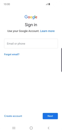 If you don't have a Google account, press Create account and follow the instructions on the screen to create an account.