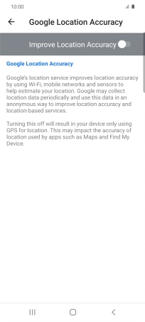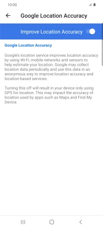 If you press the indicator next to "Improve Location Accuracy" to turn off the function, your phone can find your exact position using the GPS satellites but it may take longer as there is no access to supplementary information from the mobile network or nearby Wi-Fi networks.