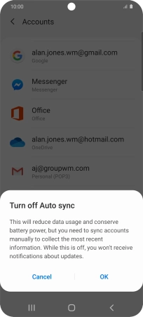 Turn automatic synchronisation of content on your Samsung Galaxy S20 5G Android 10.0 on or off