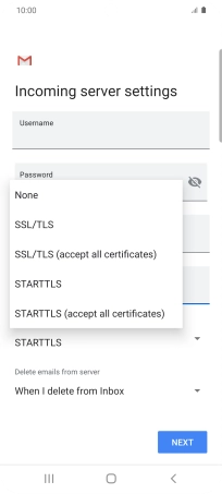 Press the field below "Server" and key in the name of your email provider's incoming server.