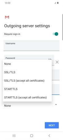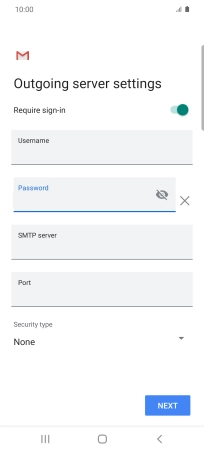 Press the field below "Username" and key in the username for your email the email provider's outgoing server.