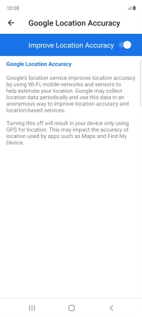 If you press the indicator next to "Improve Location Accuracy" to turn off the function, your phone can find your exact position using the GPS satellites but it may take longer as there is no access to supplementary information from the mobile network or nearby Wi-Fi networks.