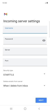 Press the field below "Server" and key in the name of your email provider's incoming server.
