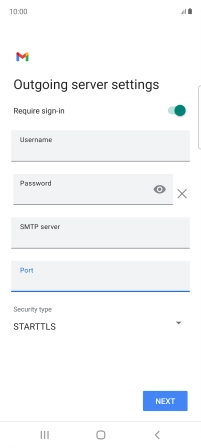 Press the field below "Username" and key in the username for your email the email provider's outgoing server.