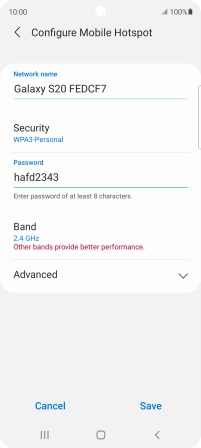 Press WPA3-Personal to password protect your Wi-Fi hotspot.