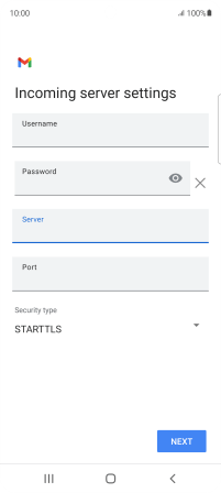Press the field below "Server" and key in the name of your email provider's incoming server.