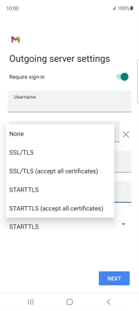 Press the field below "Username" and key in the username for your email the email provider's outgoing server.