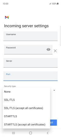 Press the field below "Server" and key in the name of your email provider's incoming server.