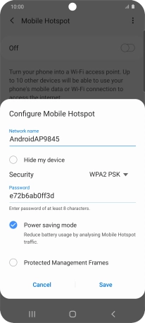Press WPA2 PSK to password protect your Wi-Fi hotspot.