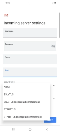 Press the field below "Server" and key in the name of your email provider's incoming server.