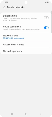 Press the indicator next to "Data roaming" to turn the function on or off.