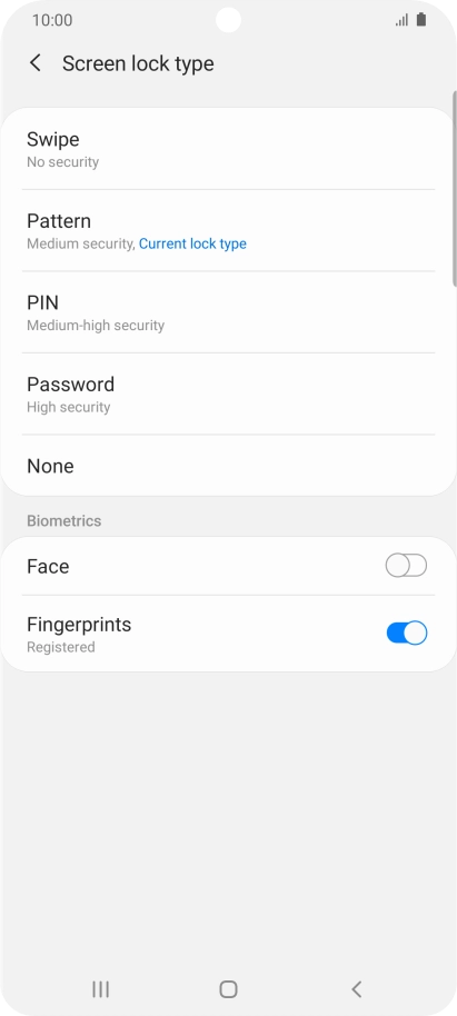 Press Screen lock type and key in the additional phone lock code you created earlier.