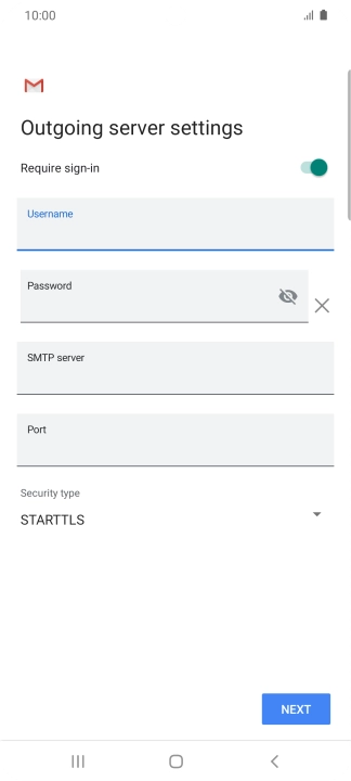 Press the field below "Username" and key in the username for your email the email provider's outgoing server.