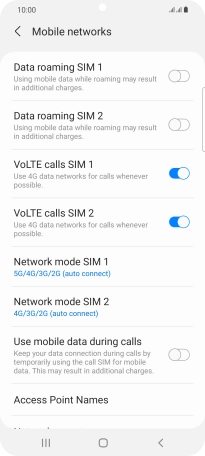 Press the indicator next to "Data roaming" to turn the function on or off.