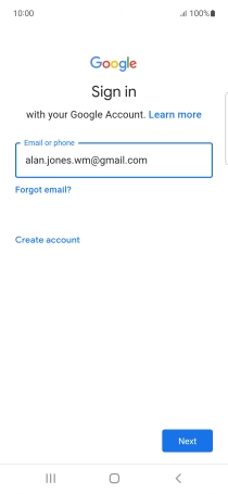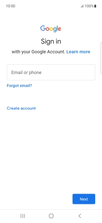 If you don't have a Google account, press Create account and follow the instructions on the screen to create an account.