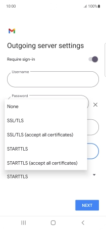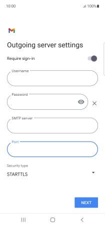 Press the indicator next to "Require sign-in" to turn the function on or off. Please note that if you're using Vodafone's outgoing server, turn off SMTP authentication and leave the username and password fields empty.