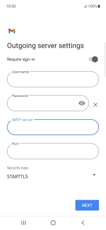 Press the field below "Username" and key in the username for your email the email provider's outgoing server.