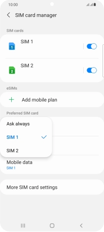 Press the name of the SIM.
