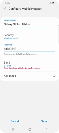 Press WPA2-Personal to password protect your Wi-Fi hotspot.